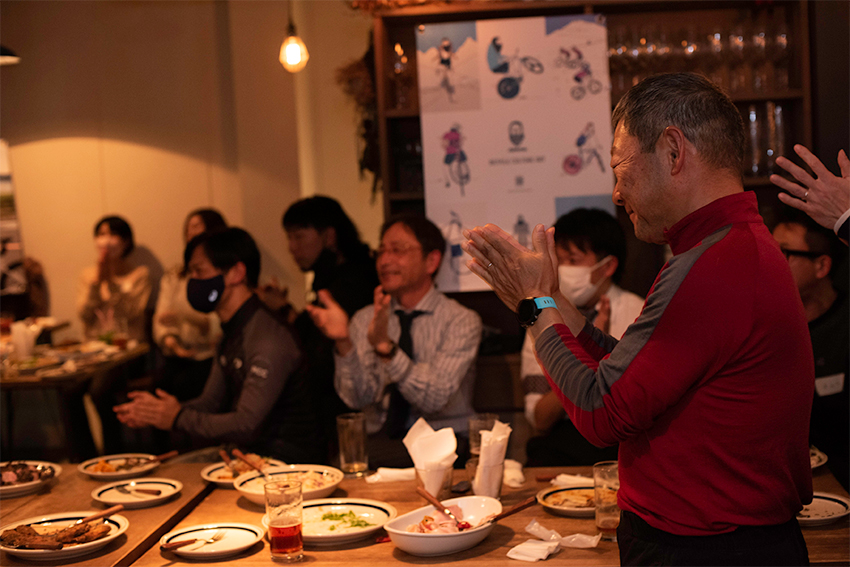 ホビーサイクリスト、プロ選手、ブランド担当者、それぞれの立ち位置はあるけれど、”自転車が好き”という同じ想いのもと集まったメンバー、そしてそこに美味しい食事とドリンクがあれば自然とこうなるものなのかもしれない。