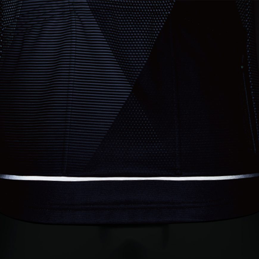 夜間の視認性を確保するバックポケット下部の再帰反射