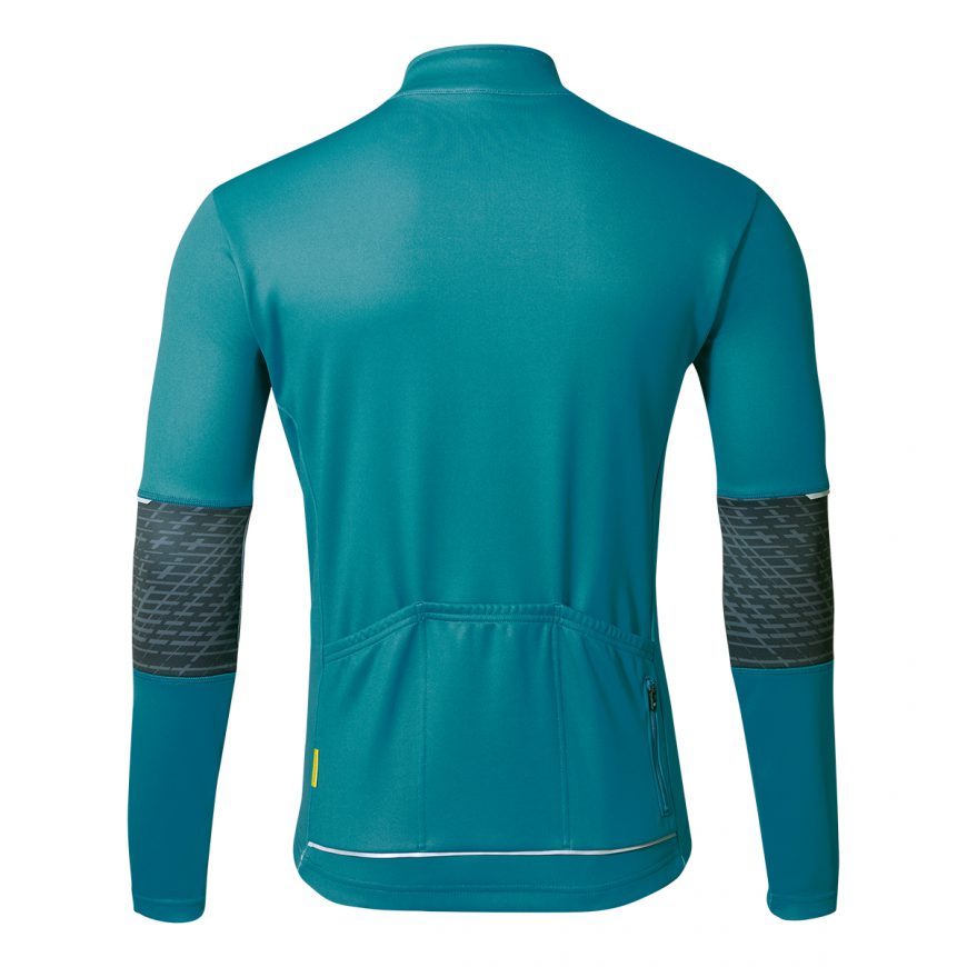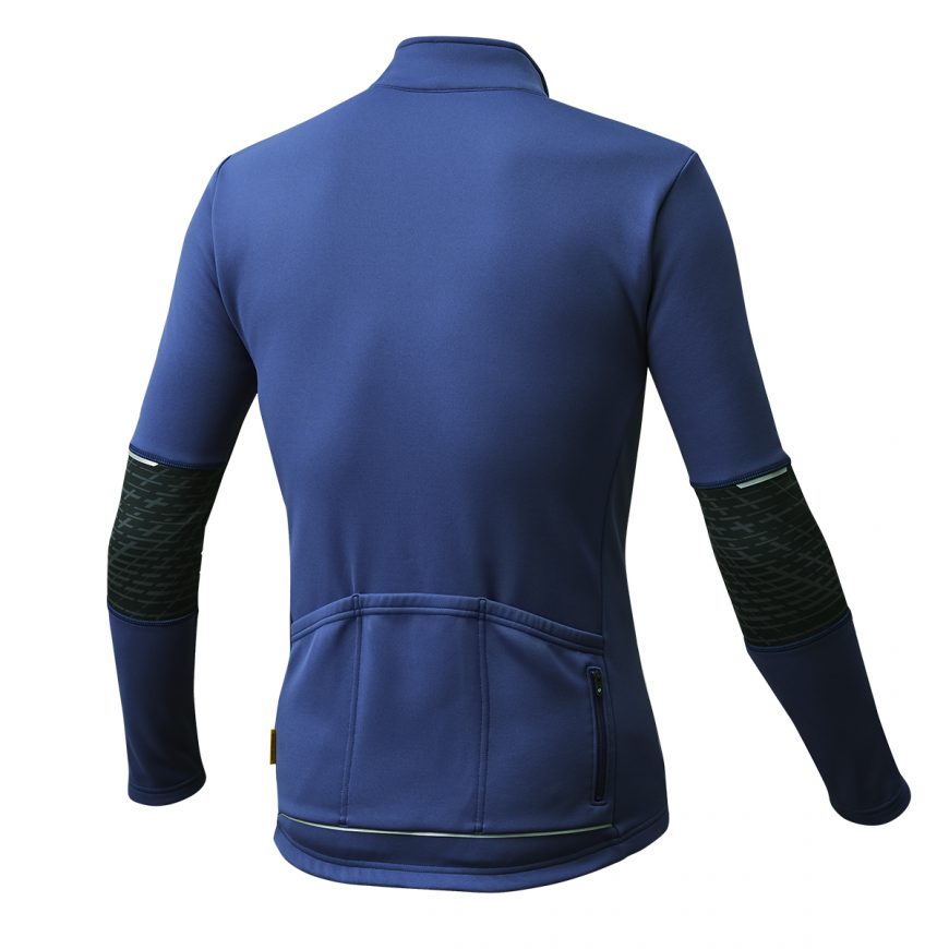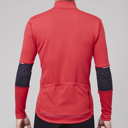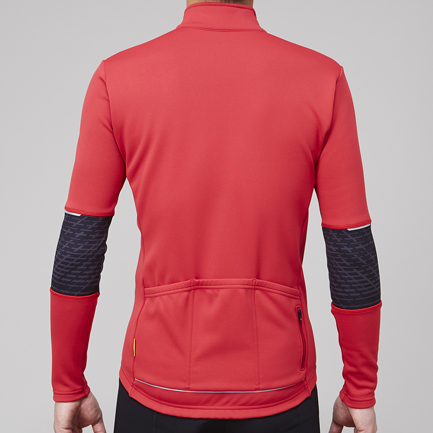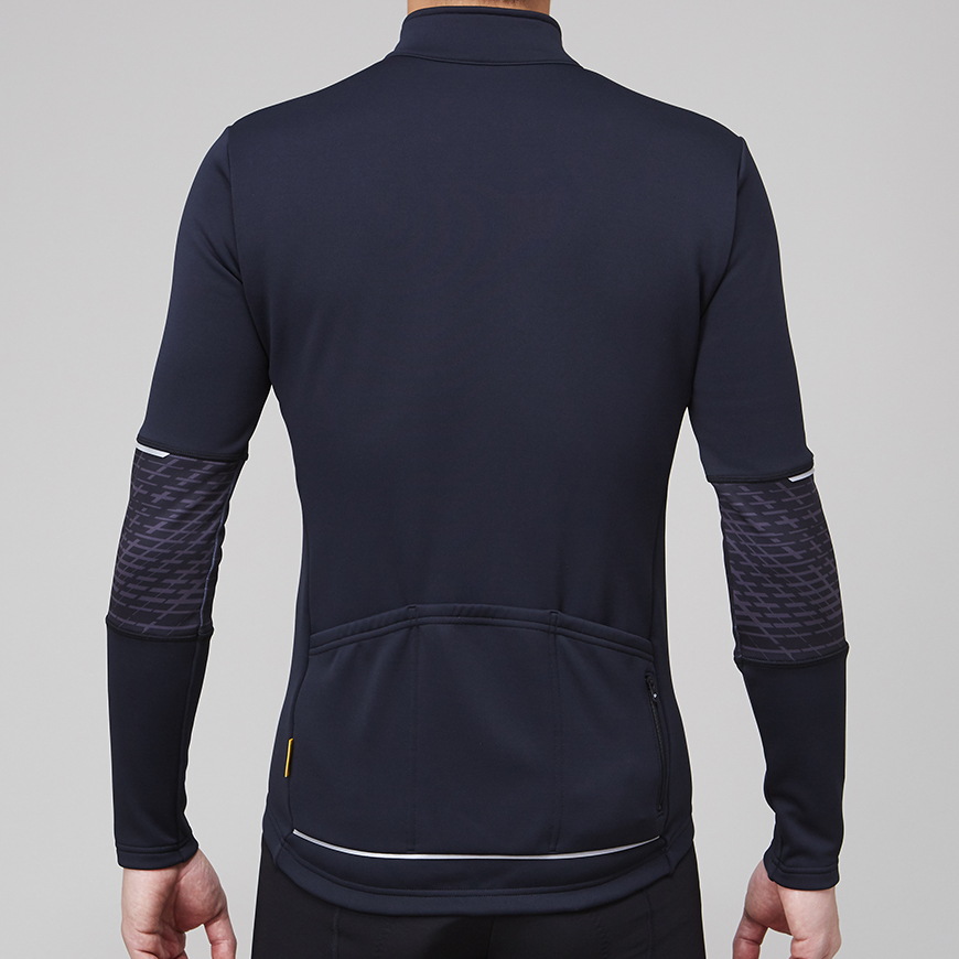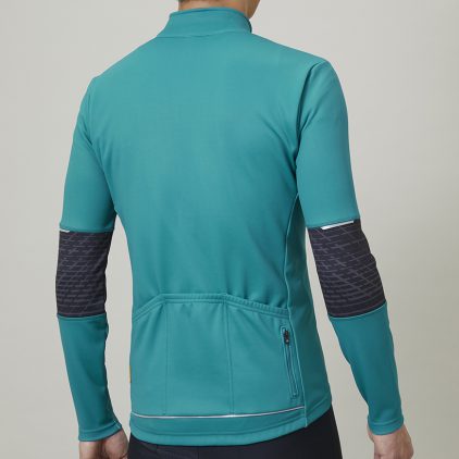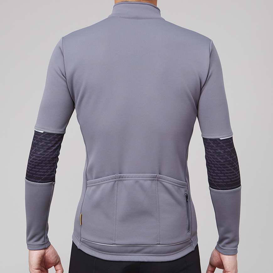 裏起毛による適度な保温性と吸汗速乾性、ストレッチ性に優れた動きやすい15℃対応のサイクルジャージです。バックポケット下部に再帰反射が付いているので、夜間の視認性も確保します。秋口や春先の肌寒さを感じる時期に使える最適なアイテムです。